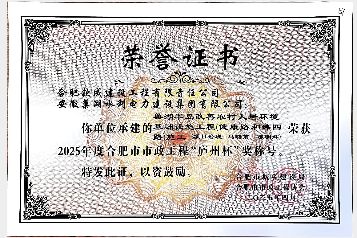 - 2025-07-282025年度合肥市市政工程“廬州杯”獎獲獎項目名單