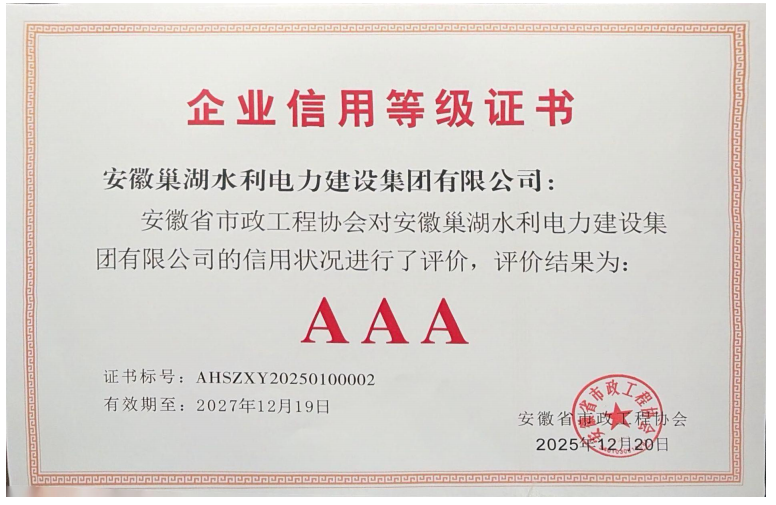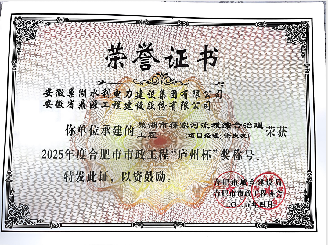 - 2024-03-28中共巢湖市組委會表彰安徽巢湖水利電力建設集團有限公司黨支部為五星級黨組織稱號