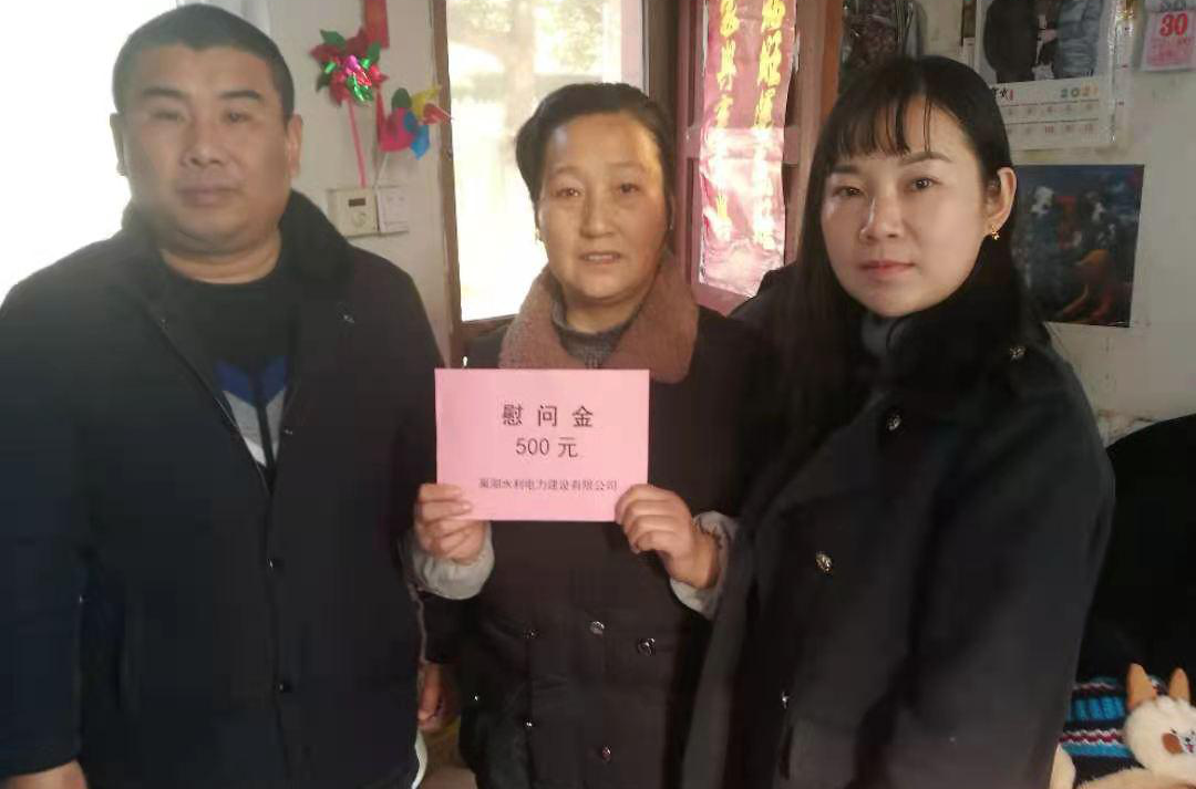 2021年1月30日上午,巢湖水利電力建設有限公司副總經理曹滿香、辦公室主任柳政以及公司退休老干部柳家瓊同志去公司南大院看望困難職工遺屬,與他們進行了親切的交談,鼓勵他們保持積極樂觀的生活態度,并為他們送上節日的慰問和祝福,向他們送去了黨和政府的關懷和溫暖,還為每戶送去了500元的慰問金。