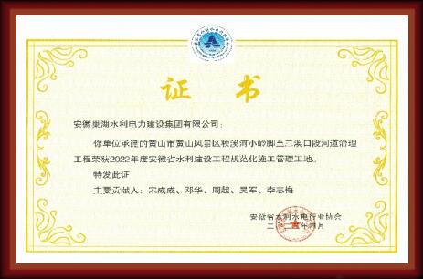 黃山市黃山風(fēng)景區(qū)秧溪河小嶺腳至三溪河口段河道治理工程榮獲“規(guī)范化施工管理工地”證書